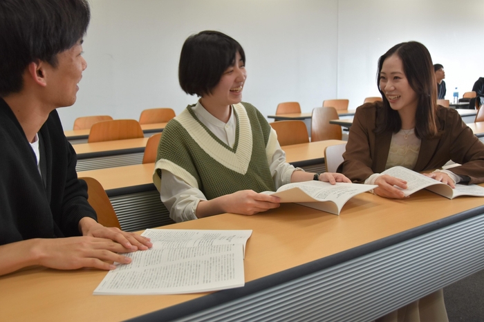 また、今春卒業した佐藤杏奈さんの力も大きかったようです。「私たちには生み出せないような発想や考察をしてもらえて、親身になって支えてくれたおかげで完成できた」と口を揃えました。「山岡教授は、自分たちには挑戦的な課題をさせながらも、最後までユーモアを交えて親身に付き合ってくれました」。山岡教授や先輩の力を借りながら、締め切りギリギリでなんとか完成。村田さんは「実際の出版物を手にしたときは、宝物をもらったかのようでした」と充実した表情を見せました。