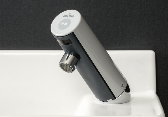 長電池寿命で定評のある「自動水栓デルマンシリーズ」。今回発売の2機種ともに単3アルカリ電池2本で駆動、1日100回の使用で約6年と競合他社の約2~3倍の長電池寿命を誇ります。また、乾電池駆動のためACコンセントを設ける必要がなく後付けで容易に自動化の工事ができることが特徴となっています。