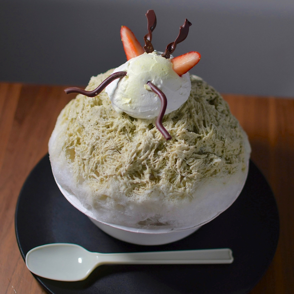 2024年の干支「辰」をモチーフにしたかき氷「ピスタチオベルガモットアングレーズ」や福岡県産のあまおうを贅沢に使い、ホールケーキをイメージした「あまおうガトー」など、かき氷の概念を覆す新しい見た目と最初から最後まで味の変化が楽しい新感覚なかき氷を全8種類販売いたします。さらに最後の仕上げをお客様の前で行う演出があるのでライブ感も楽しむことができます。