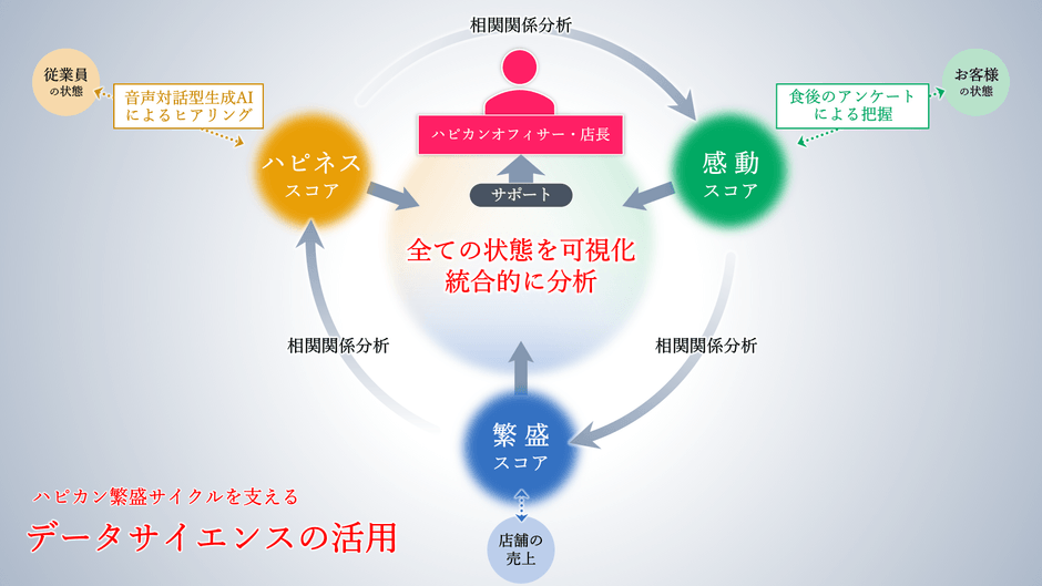 ハピネス→感動→繁盛の構造化と関係性