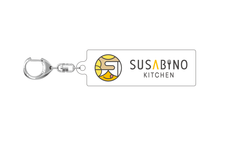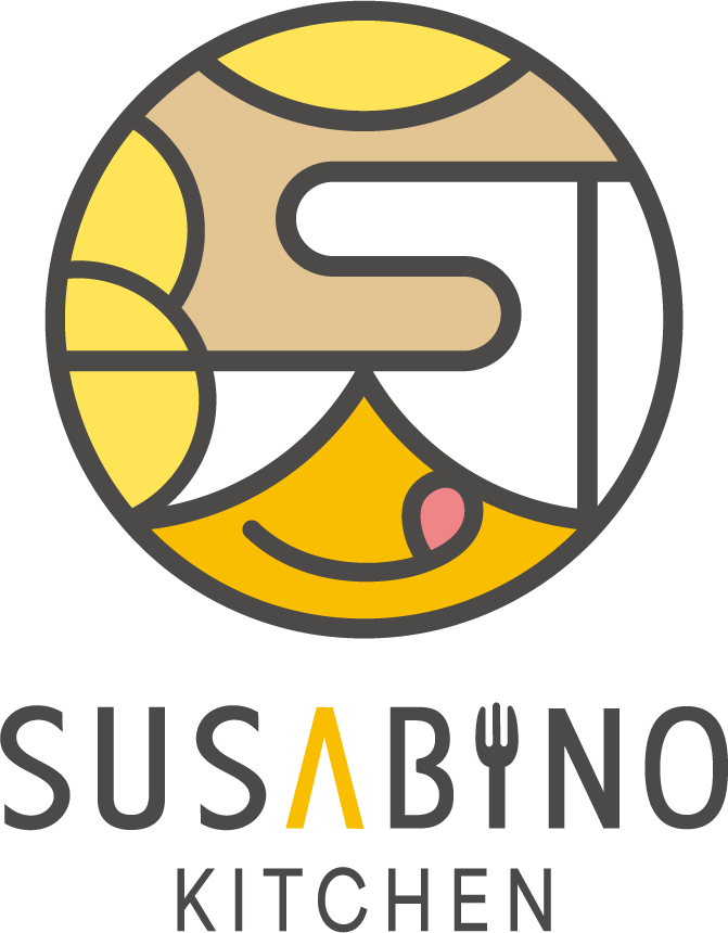 SUSABINOキッチンの誕生に合わせて新たにロゴマークを制作しました。テーマカラーは黄色で、可愛らしいペロッとした口元をイメージした特徴的なデザインです。