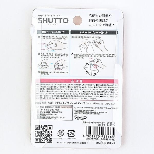 今回ご紹介するのは、癒しのキャラクター大集合!「サンリオキャラクターズ」。をモチーフにした生活アイテムをご紹介させていただきます。今回は便利、コンパクトそしてかわいい便利文具、開梱カッター&レター オープナー SHUTTOです。
