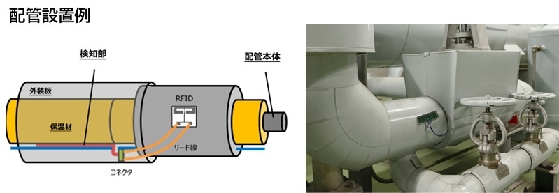 従来の目視確認では配管を覆う外装板から液体が染み出た状況でなければ発見が困難でしたが、本システムは外装板の内部に検知システムを設置できるため、液漏れ量が少ないうちに早期発見が可能になります。