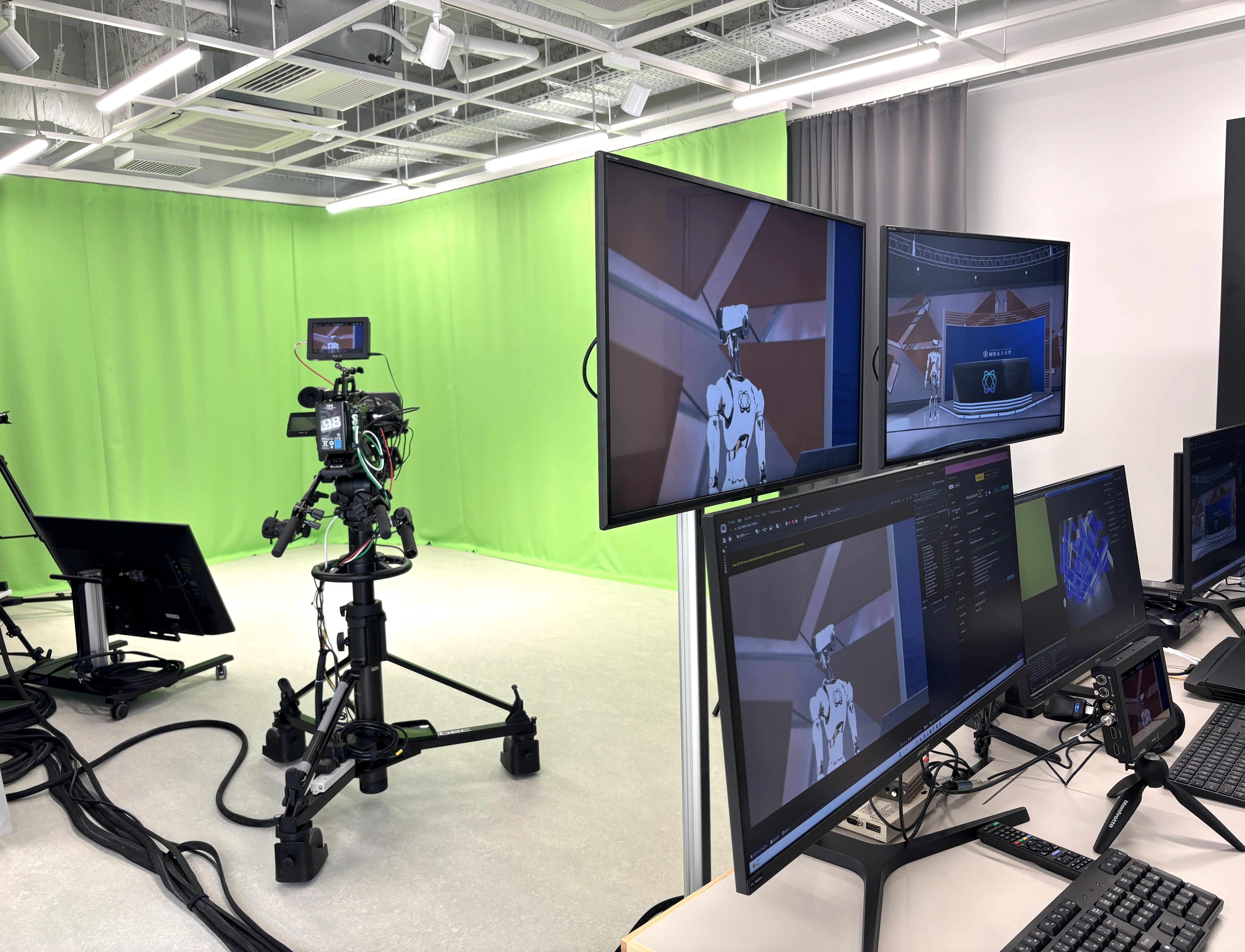 10号館には通常の授業教室に加え、映像・デザイン・デジタル表現を実践的に学ぶための「デジタルスタジオ」や学生同士の対話や協働を促す「ラーニングコモンズ」を設置しています。本校舎は、データサイエンス学科とデジタルイノベーション学科の学生を中心に、多様な学習スタイルに対応し、主体的な学びを支える最先端の環境を整えています。