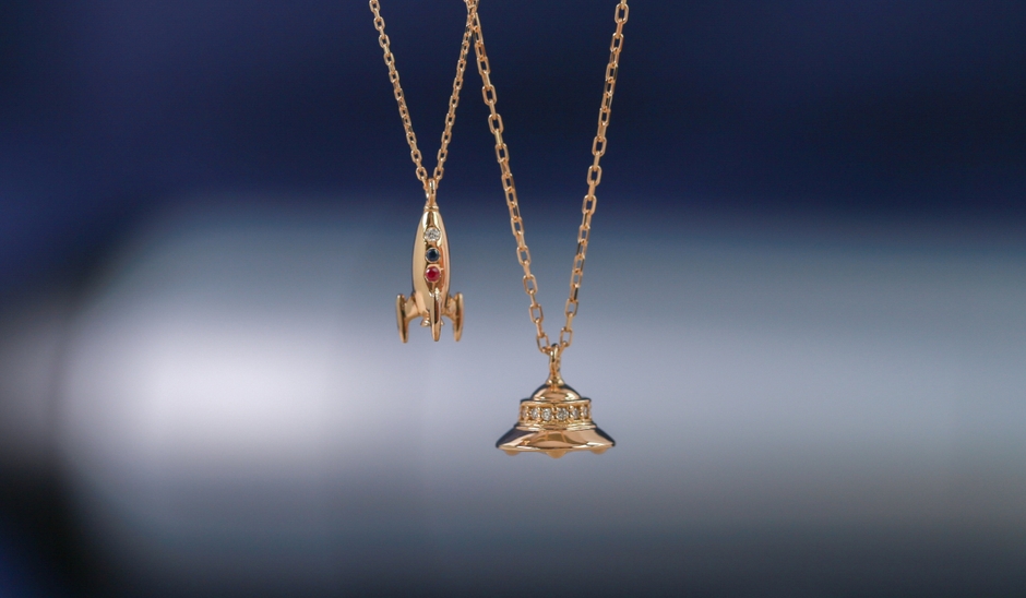 「ユーフォー」ネックレスは「昔UFOを見たことがある」というデザイナーのこだわりのアダムスキー型を採用しています。