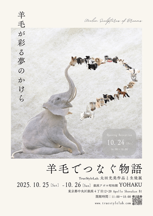 羊毛造形家・太田光美と、その教室 TrueStyleLab. の生徒たちによる作品展「羊毛でつなぐ物語」が、銀座アポロ昭和館YOHAKUにて10月25日(土)から26日(日)まで開催される。
