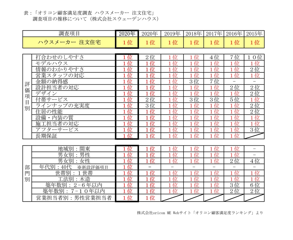 スウェーデンハウスが「2021年 オリコン顧客満足度調査 ハウスメーカー 注文住宅」において、7年連続で総合1位を受賞! ~評価項目全14項目で1位を獲得~
