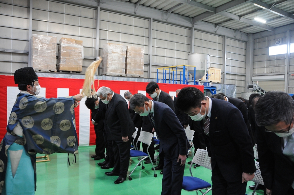 今回、札幌に導入したプラントは、インバーターにより制御された内羽を1分間に2,000回転、外羽を1分間に40回転の速度で駆動させ、一度に600 kgのバイオマテリアルを5分間で製造する能力を有します。完成したバイオマテリアルはパッカーにより自動計量し袋詰めされて、使用するコンクリート工場に送られます。計量から袋詰めまでの工程は約30分。日産約10トンもの連続製造が可能となり、生コンクリートの量に換算すると約2,000立米、年間では70万立米相当分のコンクリートを自己治癒化できる計算です。