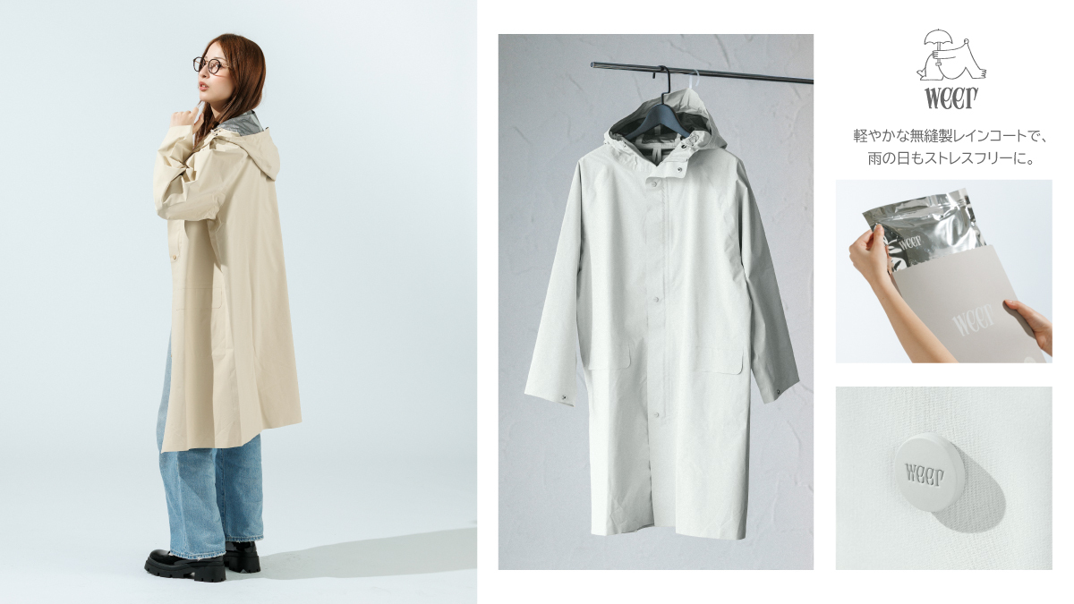 weerは、創業115年超の老舗メーカーが展開するライフスタイルブランドです。雨具としての用途に限定せず、日常の装いに溶け込むシームレスなデザインと、高い機能性を両立。天候に左右されず、日常着として快適に活用できるプロダクトを提案しています。