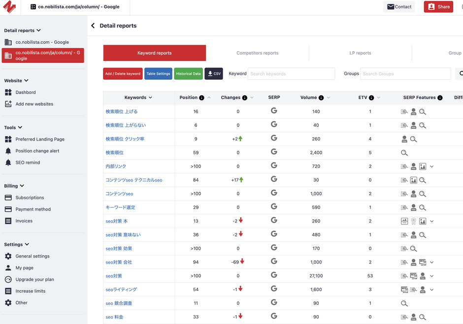 Nobilistaはクラウド型(インストール不要)で利用することができるため、チームで活用したり、外出先などでも検索順位をチェックしたりすることが可能です。