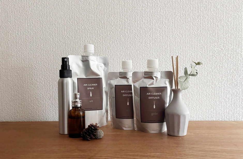 今回は丸ビル店の2周年を記念して、『HOWMORE LIVING』オリジナルのルームフレグランスを、丸ビル店・蔵前本店の両店舗と、公式Web Storeにてお買い上げいただいたお客様へプレゼント。5,000円(税込)以上のお買い上げでお渡しします。数量限定での提供です。