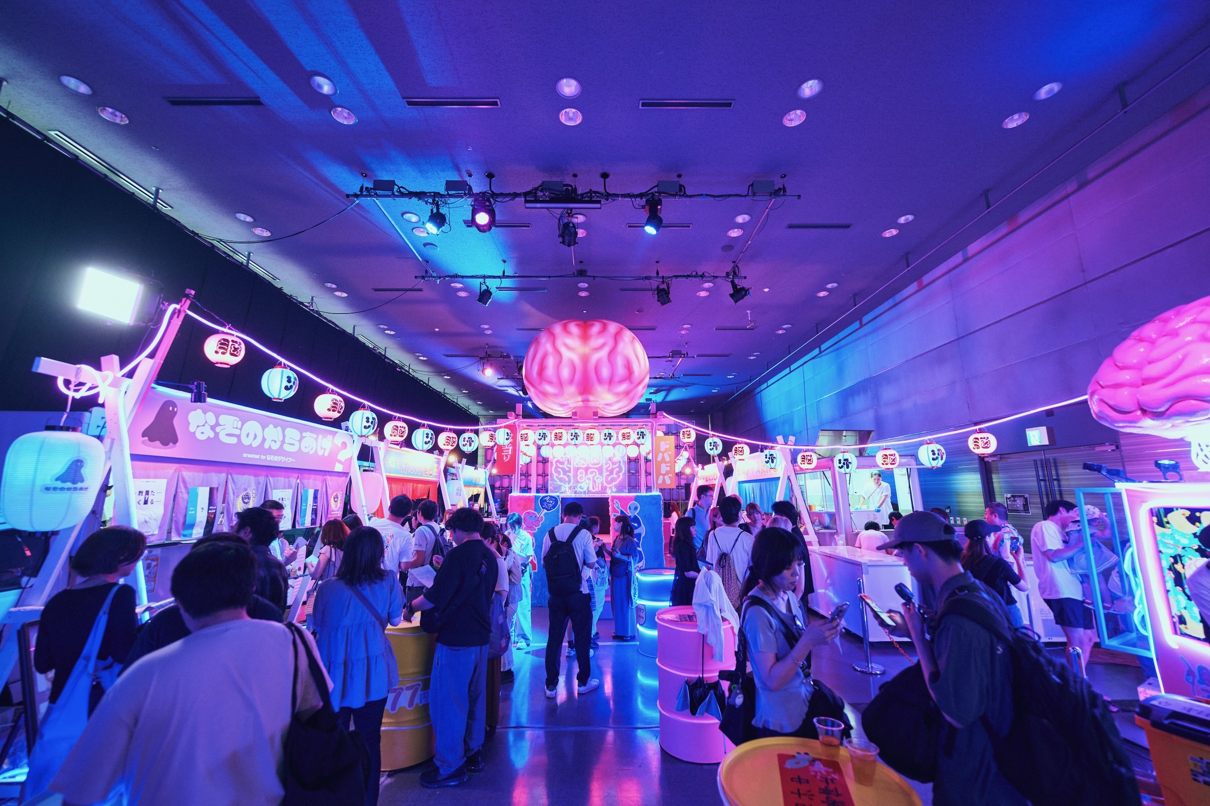 入り口のLEDのれんをくぐると、会場全体が光と色彩に包まれた脳汁の祝祭空間が広がります。音と光がシンクロするフィーバータイムなど、思わず撮りたくなるフォトジェニックな世界が来場者を迎え、非日常的な没入体験へと誘います。ここでしか味わえない、五感をゆさぶる「脳汁空間」をご堪能ください。(写真は2025年のイメージ)