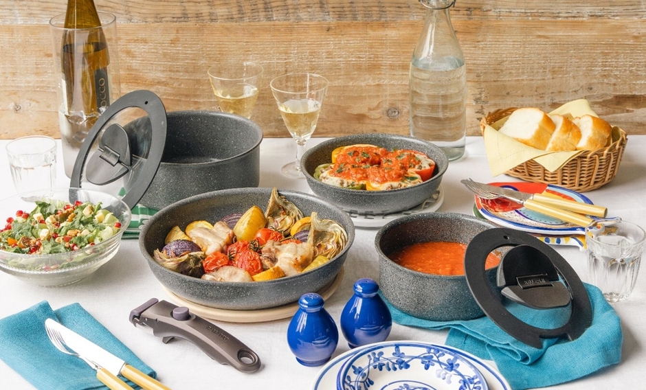 バッラリーニから、取っ手が外せるフライパンセット 「ヴィンチ」シリーズに、 幅広い利用シーンに便利な5pcセットと7pcセットが新登場!