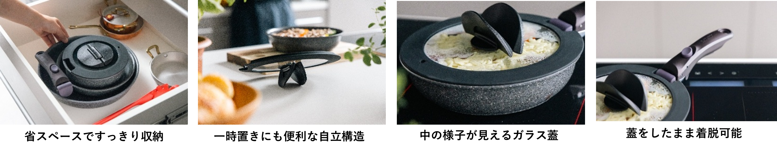 - 調理のしやすさと収納性を両立した「ウィングガラス蓋」