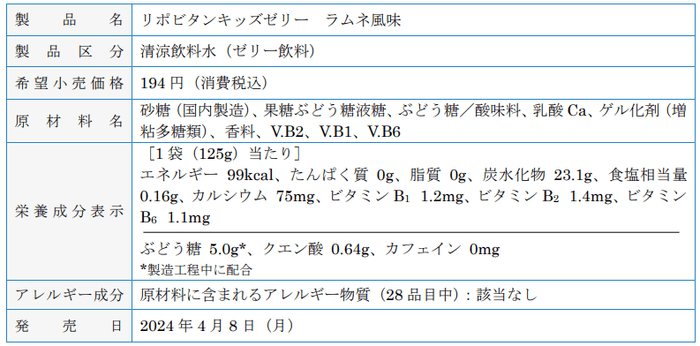大正製薬株式会社[本社:東京都豊島区 社長:上原 茂]は、成長期のお子さまに必要な栄養素を配合した清涼飲料水(ゼリー飲料)『リポビタンキッズゼリー』シリーズに、ラムネ風味を追加し、2024年4月8日(月)から全国で発売いたします。
