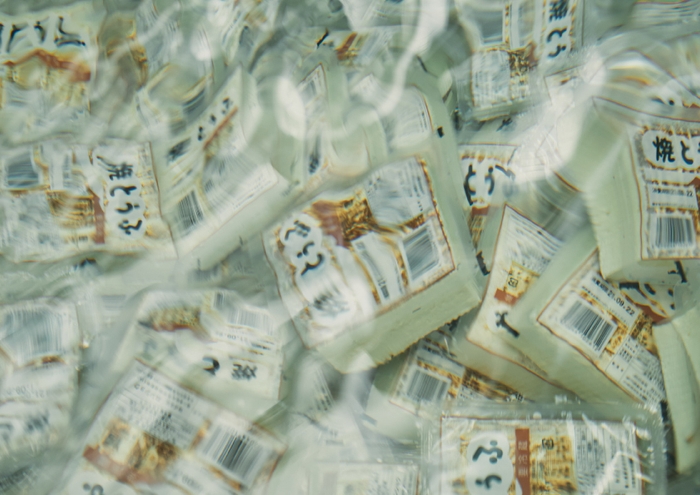 圧巻の35丁分の「型箱豆腐」ほか、当日製造のみの各種大豆加工品を取り揃え。】