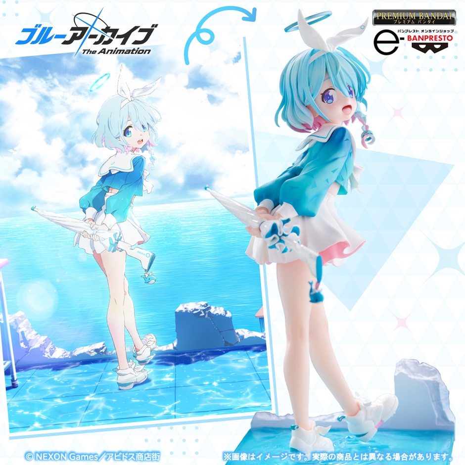 NEXON Games&Yostarが贈るアプリゲーム 学園×青春×物語RPG『ブルーアーカイブ -Blue Archive-』を原作としたTVアニメ『ブルーアーカイブ The Animation』から、アロナがフィギュアになりました!透き通った空気感をそのまま切り取ったかのような造形、まるで今にも動き出しそうな躍動感、水面と瓦礫を再現したジオラマ風台座など見どころが盛りだくさん!元気な笑顔パーツとは印象の異なる、はにかみ笑顔の表情変えパーツも付属します。