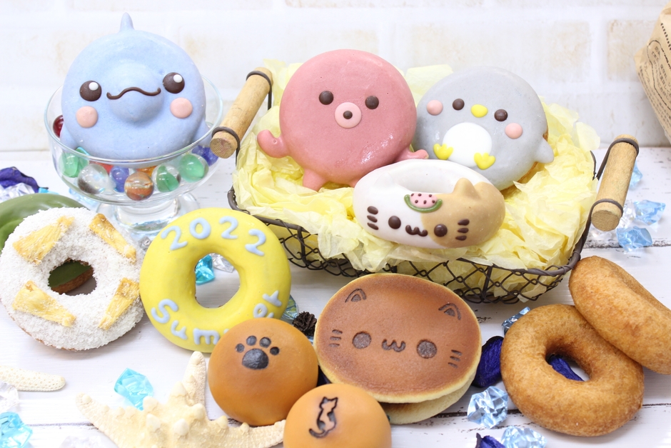 イルカ/スイカミケ/たこ/ペンギン(グレー)/Summerドーナツ/ココナッツパインドーナツ/濃い抹茶×各1個/有精卵プレーンドーナツ×2個