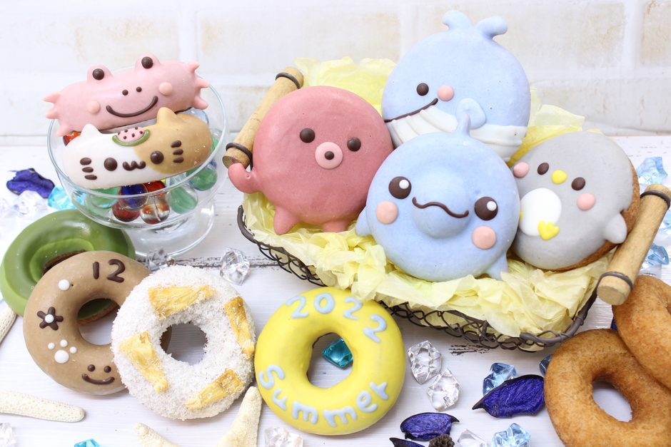 夏の帰省の手土産や、いつもお世話になっている方へのお中元にピッタリの「夏の贈り物ドーナツセット2022」が新登場。夏をイメージした新作ドーナツ「イルカ」「たこ」を含む12個セットになっています。