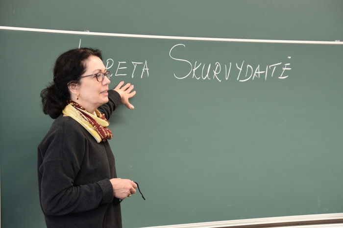本学と学術交流の協定を締結しているリトアニアのヴィリニュス大学歴史学部長のロレッタ・スクルヴィダイテ教授が12月6日、ナゴヤドーム前キャンパスで、都市情報学部の稲葉千晴教授が担当する講義「国際社会と政治」でゲストスピーカーとして登壇し、ヨーロッパの大学の歴史について解説しました。