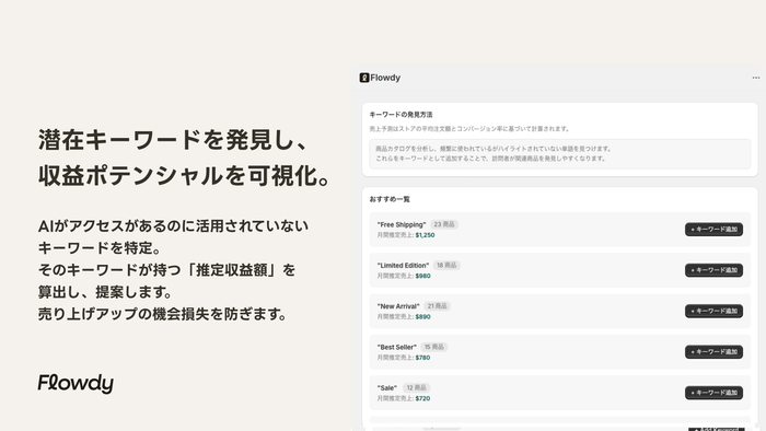 商品説明文を「売り場」に変える。キーワードクリックで関連商品を即提案するShopifyアプリ「Flowdy」をリリース。