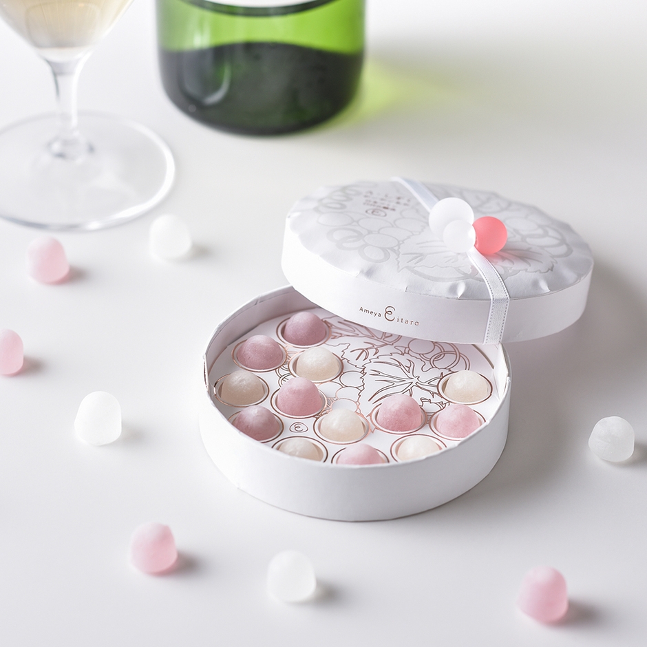 コスメティックな装いの代表商品「スイートリップ」にお酒を加えたちょっと大人のあめみつを薄衣で閉じ込めました。