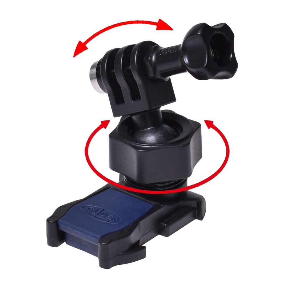 GLIDER-SPORTS製のこれまでの回転ヘッドクイックリリースバックルでは、撮影方向をノッチ式で固定していたため、微調整が避けられない撮影には他の部品と組み合わせる必要が生じていましたが、今回のフルモデルチェンジで小型の自由雲台式を採用し、僅かな撮影角度でも調節することが可能となりました。