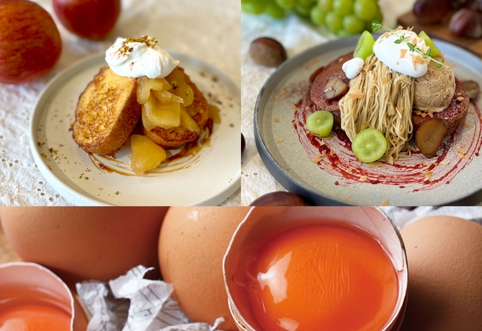 当カフェのすべてのたまごメニューは、この「日の出たまご」を使用しており、今回の秋限定スイーツの美味しさを一層引き立てています。