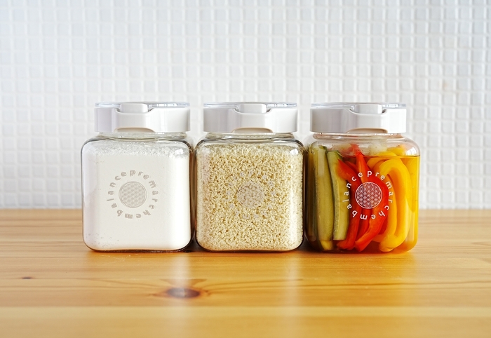 砂糖や片栗粉、パスタなどの乾物類の保存はもちろん、ピクルスや漬物などの保存にも最適です。本体は透明なので中身がわかりやすく、整理整頓がしやすくなります。