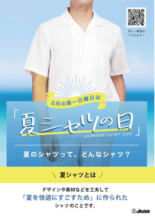 協同組合 日本シャツアパレル協会は、6月の第1日曜日を『夏シャツの日』に制定しています。協会では“夏のシャツって、どんなシャツ?”というテーマを掲げ、夏にぴったりな『夏シャツ』の情報を、2022年5月20(金)より協会ホームページ( https://kk-jsaa.jp/day-of-shirts-summer/ )で公開いたします。