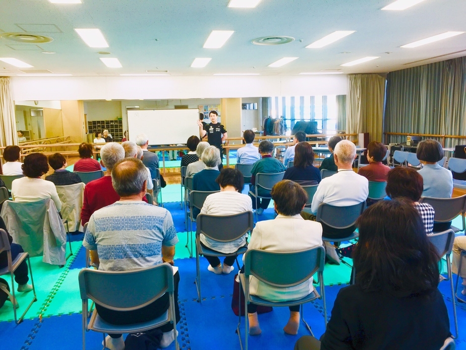 すでにカルチャーセンターでは写真(新型コロナ前)のように申し込みが殺到し、今回デイサービスなど高齢者施設でも転倒予防などロコモティブシンドロームを防ぐ目的でサービスを開始いたしました。