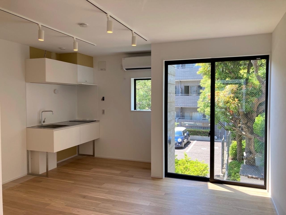 賃貸住戸の募集開始は、6月中旬を予定しています。賃貸募集開始に先立ち、5月27日(土)、5月28日(日)(両日とも11:00~17:00)に完成見学会を開催します。どなたでも参加いただくことが可能です。参加を希望される方は、HAN環境・建築設計事務所のホームページからお申し込みいただけば、詳しい住所等をご連絡いたします。