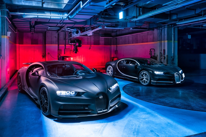 2台のノワールがブガッティの伝説と世界観を表現しています。