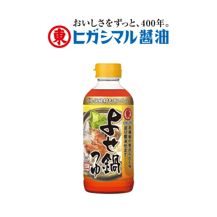 鰹と昆布をはじめ8種のだしを淡口醤油で仕立てた、あっさりだけどコクのある深い味わいのよせ鍋つゆです。3倍濃縮タイプで、薄めた後は1200mlなので、家族みんなでしめのうどんやおじやまでしっかりと楽しめます。