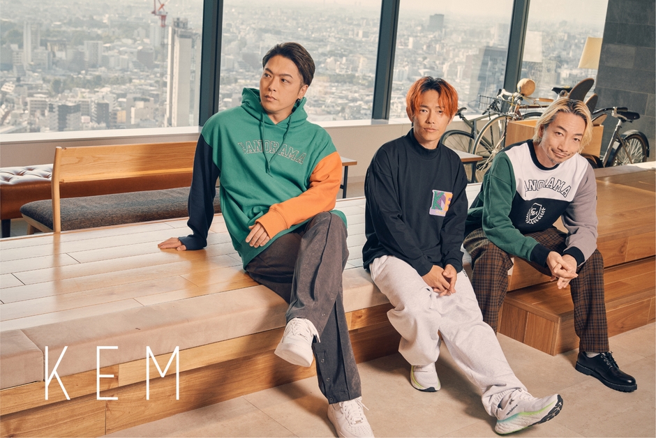 KEMらしい日常に彩りを添えるような鮮やかな色使いと、落ち着いたシックなテイストで仕上げた2カラー展開のパーカーやプルオーバーをはじめ、メンバーのeyeronが手書きで描いた「KEM」ロゴを大胆に配置したモックネックロングスリーヴTシャツなど、機能性やデザインにも拘りが見えるラインナップ。