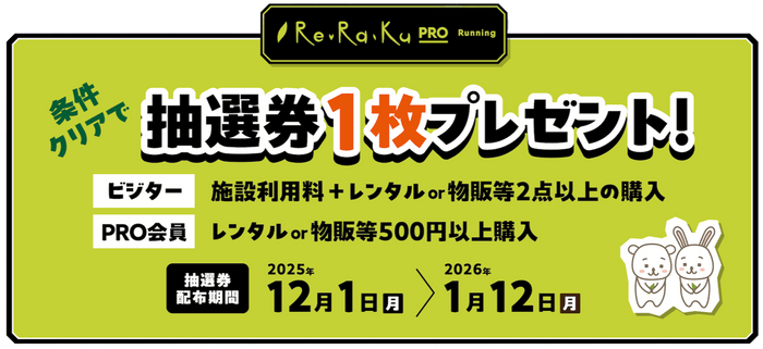 Re.Ra.Ku/Bell Epoc/Spa Re.Ra.Ku/Ruam Ruam/Re.Ra.Ku PRO の各店舗にて、ブランドごとのキャンペーン参加で抽選券を配布します。