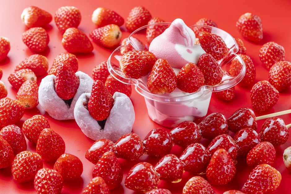 いちごをふんだんに楽しむ「大粒いちご大福」や「ロングいちごあめ」