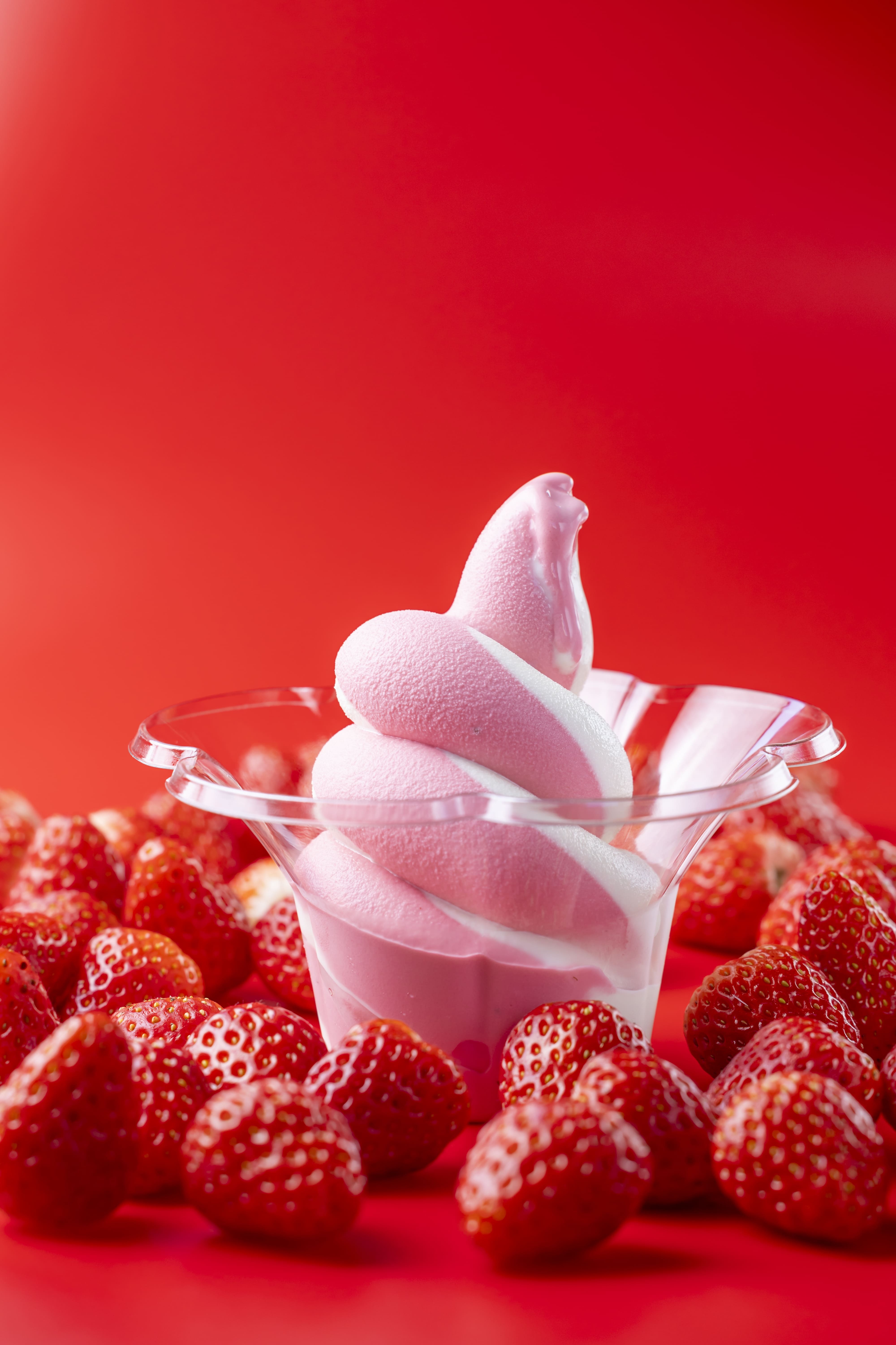 いちごの旬の時期ならでは!人気の「いちごみるくソフト」をのせたカップに、目の前で「STOP!」とお声がけいただくまで静岡いちごを盛って提供いたします。静岡いちごの甘酸っぱい味わいに、ソフトクリームのミルキーな甘さがぴったりです。お好みで練乳もおかけいたします。