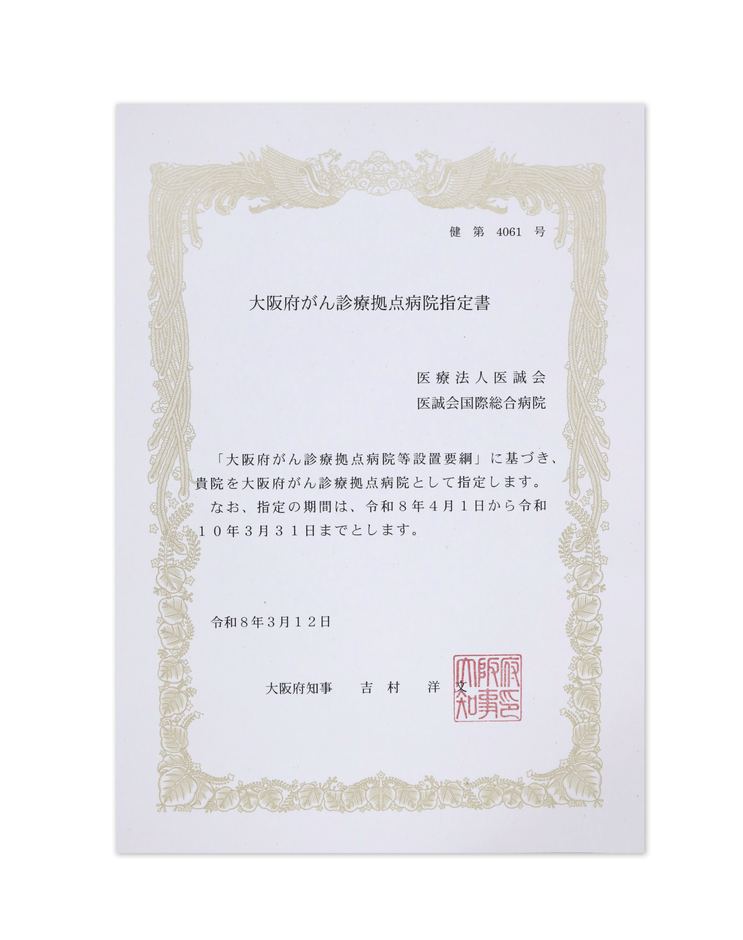 医療法人医誠会(本社:大阪府大阪市、代表者:谷 幸治)は、医誠会国際総合病院が2026年4月1日付で大阪府が指定する大阪府がん診療拠点病院に指定されたことをお知らせします。