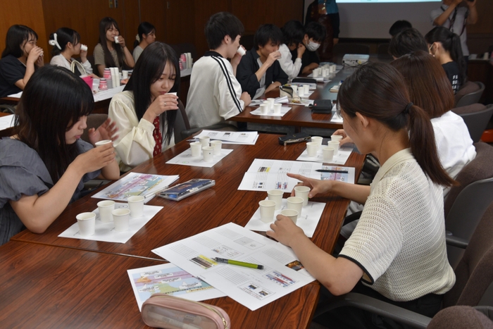 本学と産学連携に関する包括協定を締結している「株式会社ATグループ」(名古屋市昭和区)と本学経営学部の澤田慎治准教授のゼミ生たちがコラボして、愛知トヨタのショールームで提供するオリジナルのブレンドコーヒーと紙コップを開発することになり、天白キャンパスで9月30日、「UCCジャパン株式会社」(東京都港区)の協力を得てゼミ生25人を対象にしたコーヒーセミナーが開催されました。