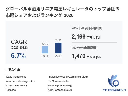 本記事は、YH Researchが発行したレポート「グローバル車載用リニア電圧レギュレータのトップ会社の市場シェアおよびランキング 2026」 を紹介しています。