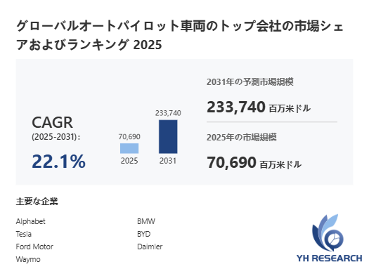 上記の図表/データは、YHResearchの最新レポート「グローバルオートパイロット車両のトップ会社の市場シェアおよびランキング 2025」から引用されています。