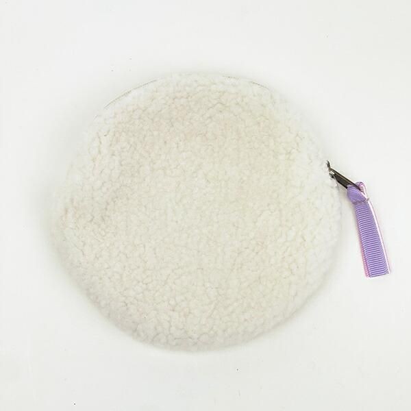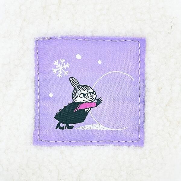 大きな雪玉を転がすやんちゃなリトルミイの姿にほっこり。ふわふわのシープボアで雪玉をイメージした面白心あふれるポーチです。。パープルのリボンタッセルがアクセントになってナチュラルでおしゃれな印象です。サイズ:14cm×14cm×1.5cm 素材:ポリエステル