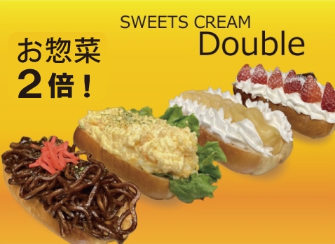 お客様の要望にお応えし、人気の焼きそばパン・半熟たまごサラダが通常の2倍の量の入った倍盛こっぺぱんが新登場。