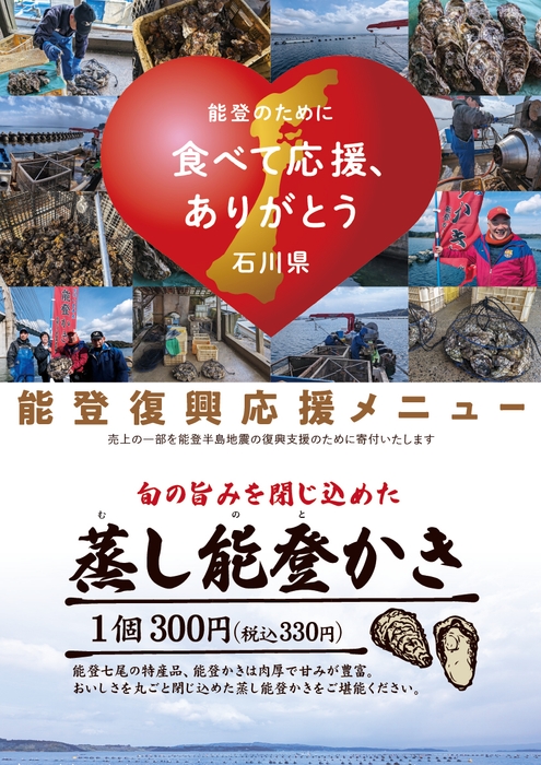 食べて応援!能登復興応援メニュー「蒸し能登かき」を 3月15日より販売開始