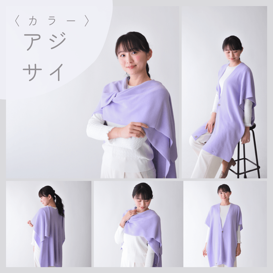 この『ぬくもり纏うアレンジストール』は、4つのカラーバリエーションからお好みの1着を選べ、ストールを少し長めにデザインされたベストとしても包み込むような温かさで工夫を凝らし、高齢者の方々が明るく前向きな気持ちで過ごせるような、ワクワクお出掛けしたくなるような、そんな商品の開発を目指しました。
