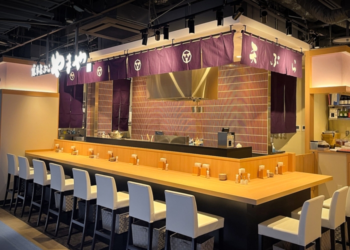 今回オープンする「博多天ぷらやまや COCONO SUSUKINO店」は、店内にあるカウンターの前で天ぷらを揚げ、揚げたての天ぷらを一品ずつお客さまへ提供する博多で主流となっているスタイルを採用。また、既存の提供スタイルに加え、同フロアに併設されているフードコート内へのテイクアウトも対応しております。ご家族でご利用いただけるよう、小学生以下のお子さまメニューもご用意いたしました。