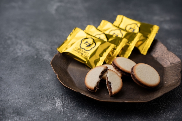 チーズクッキーにサンドされた、芳醇なキャラメルと濃厚チョコレートの贅沢な味わいの「キャラメルサンドウイッチ」が新発売となります。