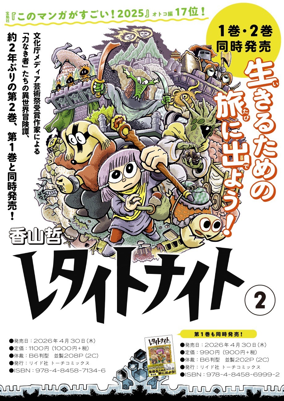 株式会社リイド社(所在地:東京都杉並区、代表取締役社長:齊藤哲人)は2026年4月30日(木曜日)に、『レタイトナイト』(香山哲)1・2巻を刊行いたします。