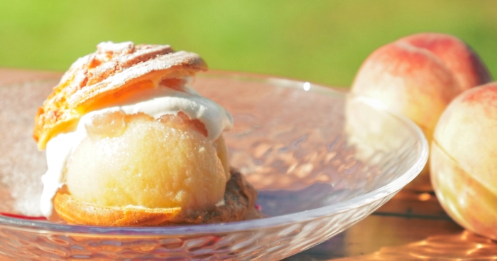 農家レストラン「陽・燦燦」桃で彩る絶品スイーツ登場『淡路産桃のまるごとシュークリーム』6月22日より提供開始